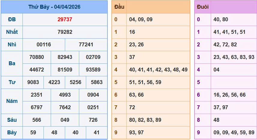 Phân tích bảng kết quả xổ số ngày 04/04/2026: