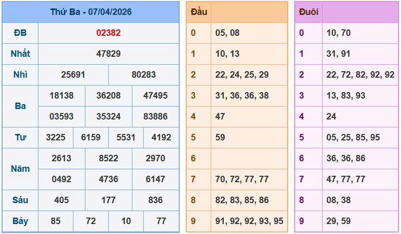 Phân tích bảng kết quả xổ số ngày 07/04/2026: