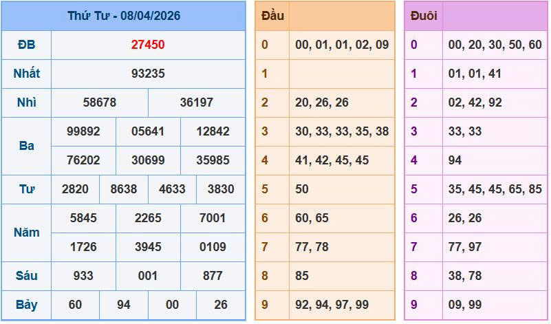 Phân tích bảng kết quả xổ số ngày 08/04/2026: