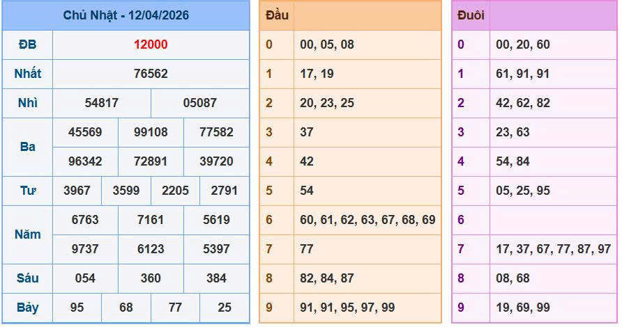 Phân tích bảng kết quả xổ số ngày 12/04/2026:
