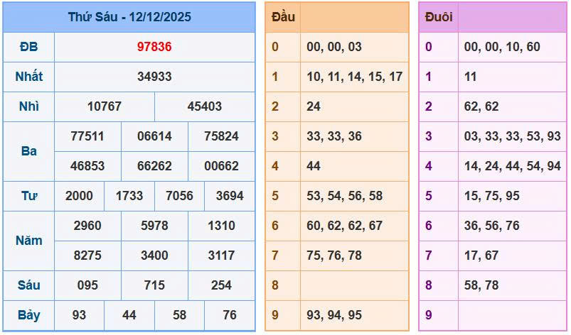 Hôm qua ngày 12/12, cầu lô duy nhất kiếm được tiền của chủ lô đó là song thủ lô chiến thắng khi về lô 15.  Còn lại các cầu lô đề khác đã bị sập cầu. Tuy nhiên các bạn cũng đừng vội nản lòng chúng tôi luôn gắng tìm ra cầu cầu lô nhiều nháy. Và tiếp tục duy trì cầu đề ăn thông để lấy lại tự tin cho các anh em.