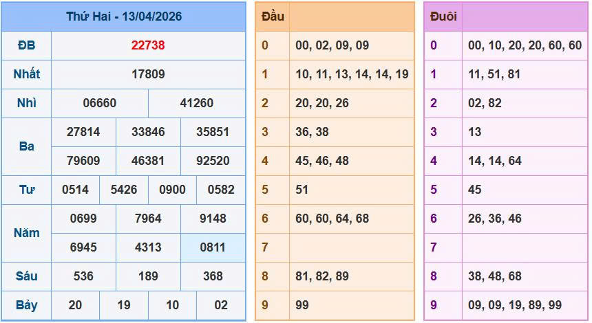 Phân tích bảng kết quả xổ số ngày 13/04/2026: