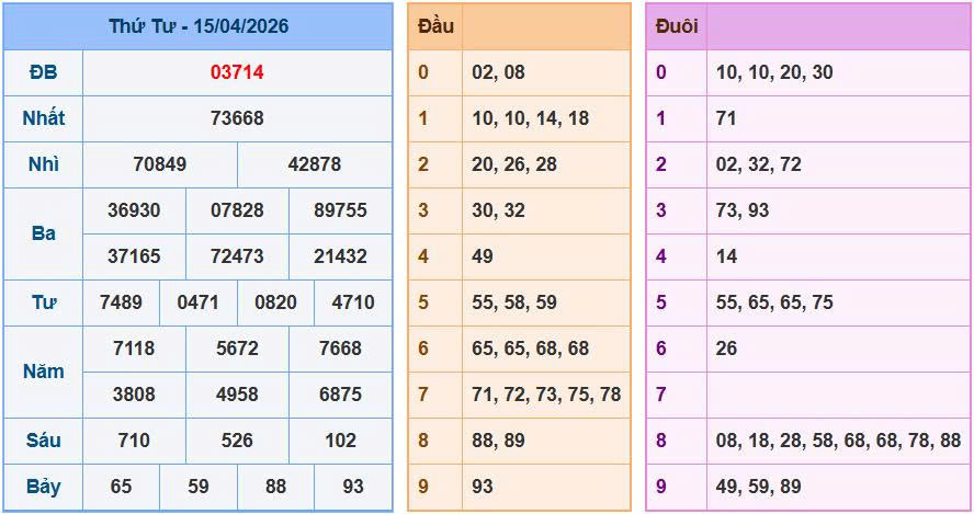 Phân tích bảng kết quả xổ số ngày 15/04/2026: