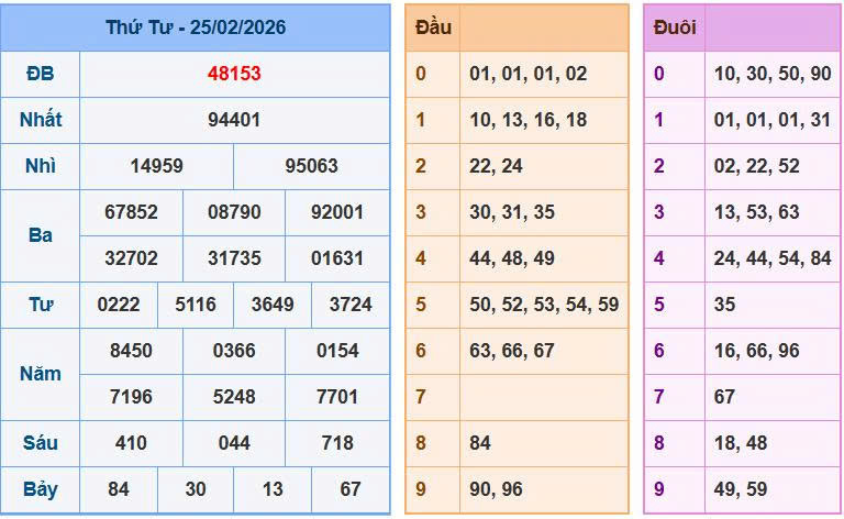 Phân tích bảng kết quả xổ số ngày 25/02/2026: