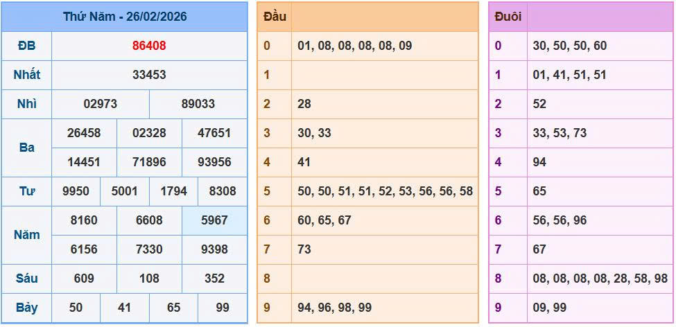 Phân tích bảng kết quả xổ số ngày 26/02/2026: